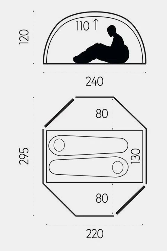 De buitentent is aan de korte uiteinden iets hoger wat, in combinatie met de hooggeplaatste ventilatieopeningen en een mesh binnentent, zorgt voor een tent die ongelofelijk goed ventileert.