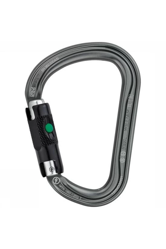 De William Ball-Lock van Petzl is een groot formaat karabiner met vergrendeling, ideaal voor trapezen of harnassen om 1 persoon te beveiligen.