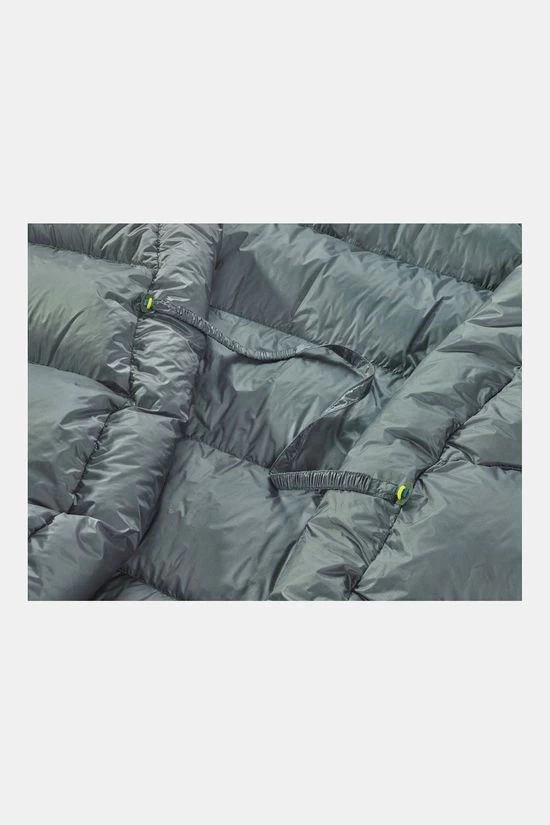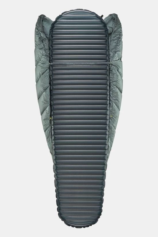 - De slaapzak is gevuld met ganzendons en maakt gebruikt van een thermische constructie om warmte en comfort in een ultralichte verpakking to kunnen garanderen.